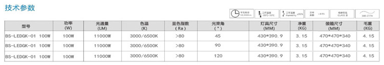 BS-LEDGK-01 100W尺寸: