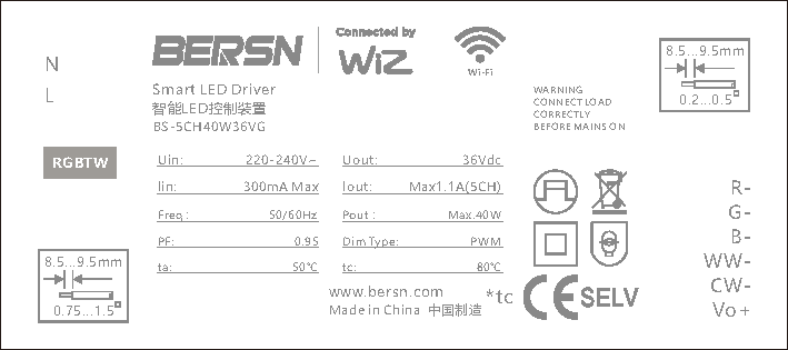 Model:40W 24V/36V WIZ RGBTW 220-240V CV