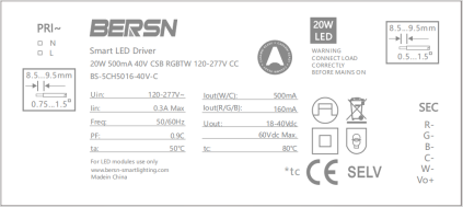 20W 500mA 40V CSB RGBTW 120-277V CC |