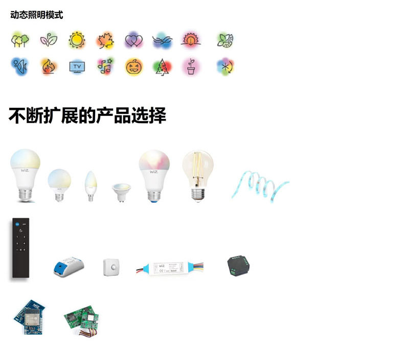 除了滿足對(duì)日常生活的照明支持,家居生活也不時(shí)需要繽紛色彩。該系列產(chǎn)品支持1600萬種色彩的變化,WiZ APP更內(nèi)置如放松模式、浪漫模式、會(huì)客模式等多種靜態(tài)氛圍模式及動(dòng)態(tài)光效,為家居生活帶來沉浸式的光效氛圍。